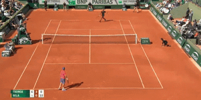 去年法网特松加和塞拉的比赛,两人竟然秀起了脚法,小黄球在两人脚上传递中瞬间成了足球。
