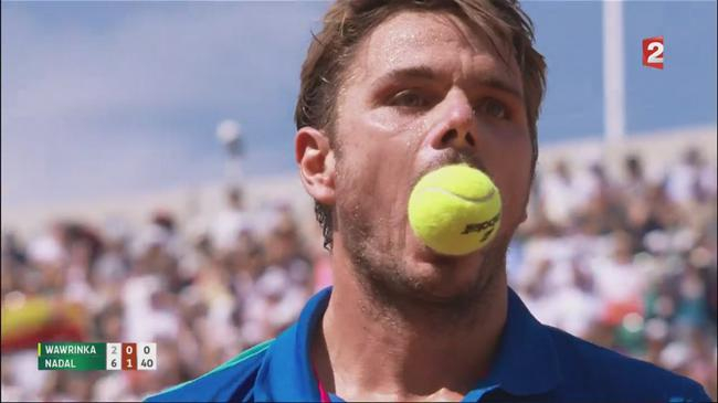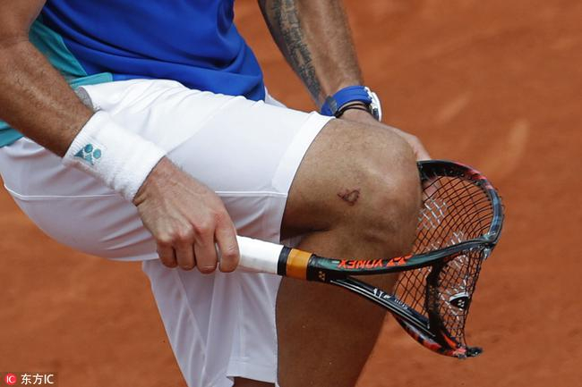 今天比赛中,瓦林卡表现平平,不满自己发挥的瑞士人一度生气地把球拍折断,还把球吞在嘴里,很是无奈。