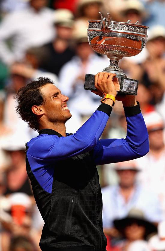 这项数据是维兰德、伦德尔、库尔滕和费德勒四人的总和。现在纳达尔是拥有法网奖杯最多的男球员,他的非凡成就已经超过了亨利·库切特,后者一共拥有单打、双打和混双在内的9个冠军。