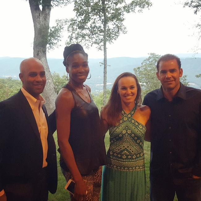 他和詹姆斯-布雷克、大威和玛蒂娜-辛吉斯一起,在西弗吉尼亚出席了一场网球表演赛(The Greenbrier Champions Tennis Classic)。