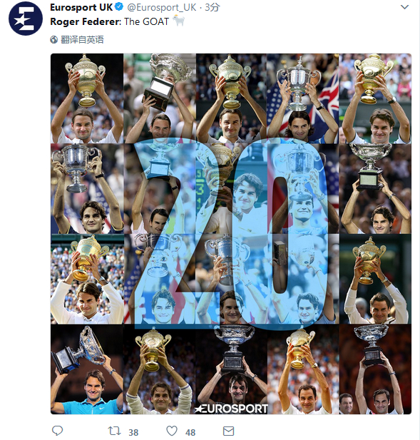 欧洲体育英国的推特则简洁明了--费德勒:GOAT