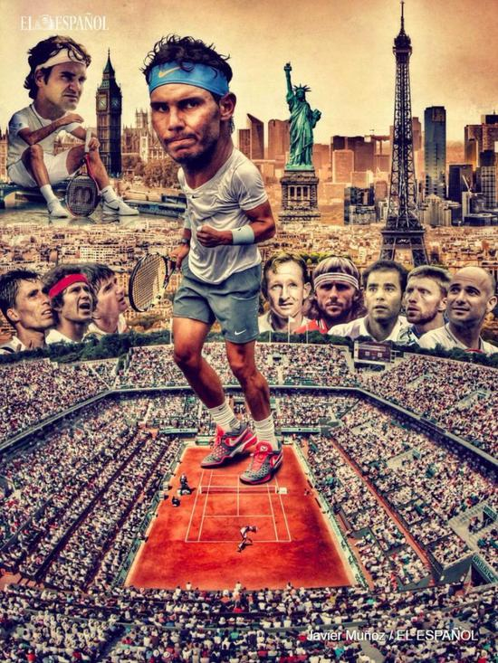 网友争议的部分主要在于纳达尔的版面不够明显,作为十一届法网冠军,纳达尔手握 57 座红土赛事桂冠,以及一系列惊人的红土纪录,这次番位被压,引发众人鸣不平。好事的外国网友甚至进行修图,强行将纳达尔的头像 PS 到了 C 位。还有西班牙媒体为本国国宝级球员发声,重新制作了一张海报,将纳达尔大头全身像摆在了红土场地正中心,费德勒侧坐在一旁,历史上众多名宿则成为背景板。