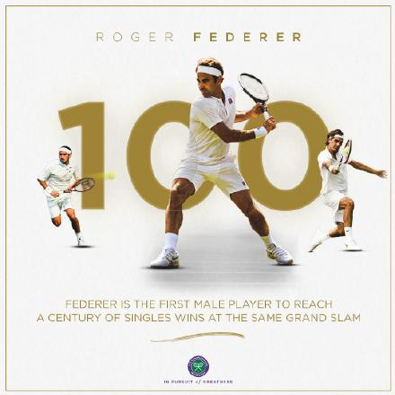 100在今年对费德勒来说是个很重要的数字,几个月前在迪拜,他收获了自己职业生涯第100冠,为他职业生涯再添新篇章,而今天在温网,他收获了第100胜,成为了网坛历史上在单个大满贯赛事里胜场数达到三位数的第一人,此前这一纪录由康纳斯在美网的98胜保持。