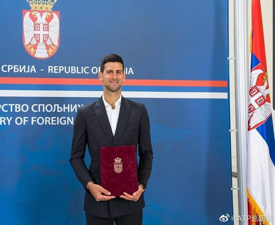 今年6月,德约科维奇被塞尔维亚外交部授予“对国家杰出贡献奖”,来表彰他在国际舞台上为塞尔维亚做出的贡献。