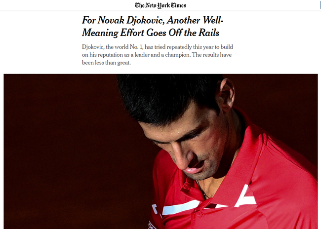 《纽约时报》发表了关于亚军德约科维奇的特写,称世界第一德约科维奇尽力在这个赛季去巩固自己的“领导者”和“冠军”地位,但结果却并不如预期。他在这一年中经历了以往所没有的动荡,最终还是纳达尔成为了2020赛季真正意义上第一个击败德约科维奇的球员。文章称,后者仍可以争取“完美”,关键就在于“限制在场上和场下的非受迫性失误”。