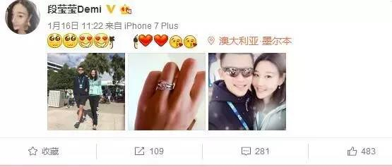 不仅如此,段莹莹事业爱情两手抓两手硬,澳网期间就在微博秀恩爱,晒出小鲜肉男友和鸽子蛋。在比赛期间,多次出现男友为段莹莹加油的镜头。之前段莹莹多次在微博晒出自己的生活照被网友诟病与本人赛场差距过大,实际上每个女孩子都很爱美,能够在风吹日晒条件下奔波训练比赛都舍弃许多,段莹莹也是一样,生活中好好打扮一下也是一个高挑美女。