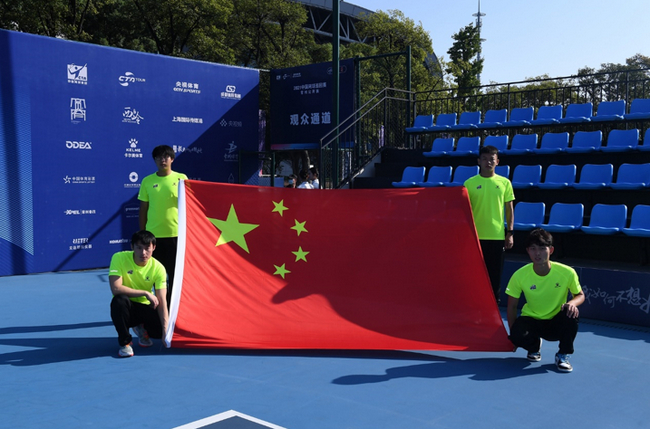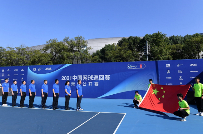 伴随着庄严的国歌声,参加开幕式的全体人员立正面向国旗行注目礼,在五星红旗的见证下,裁判员代表郑维和运动员代表朱皑雯庄严宣誓,保证赛事在公平公正的条件下顺利开展。最后,国家体育总局网球运动管理中心主任、党委书记刘文斌宣布开幕,所有嘉宾开球,本届赛事开幕仪式圆满结束。
