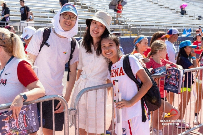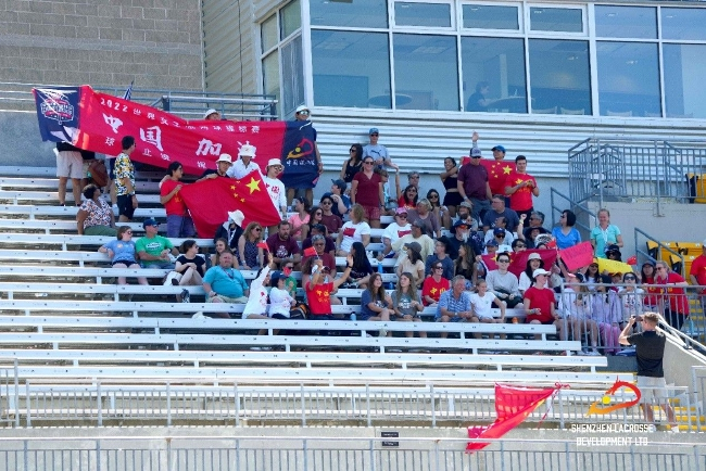 观众席里,中国棍网球的球迷朋友们一边高呼“中国加油”,一边分享女队接连得分带来的喜悦。还未进入比赛第四节,中国棍网球女队就以10比6保持着领先态势!