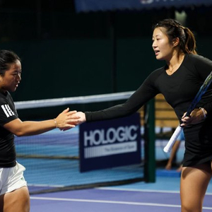 中国台北球员梁恩硕与中国香港球员张玮桓是一对黄金组合,两人上个月拿下了WTA125长沙站的冠军,在本届广网她们已经成功闯进了双打半决赛。比赛间隙,两人来到南沙区第三幼儿园海语熙岸园区,与这里的孩子们一起打网球、玩游戏。