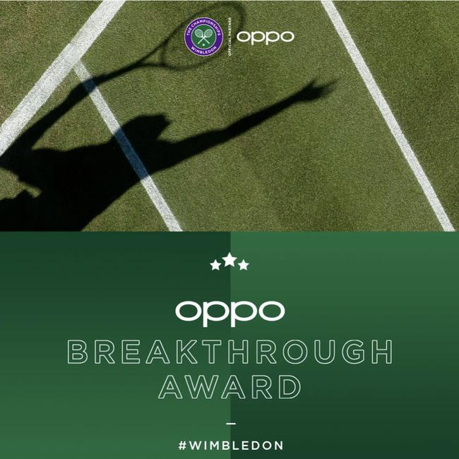 自7月1日起,每天温网官方频道将会综合当日所有赛事表现推选一位突破新星奖候选人,并在7月9日公布最后4强名单,届时所有的球迷都可以通过温网官方渠道选出自己心目中的最能诠释网球精神的突破新星。7月14日,伴随着温网所有组别冠军的诞生,首个OPPO突破新星结果也将会公布。感兴趣的球迷可以登录https://www.wimbledon.com/en_GB/about_wimbledon/2019-06-30_oppo_.html关注评选动态和最终结果。