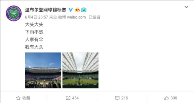 除了赛制改变之外,这次的温网场地新修了顶棚,官网微博还非常调皮的用上了“大头大头下雨不愁”,刚好对应了此前网友们对于法网场地没有顶棚的吐槽,皮一下真的很开心。