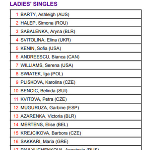 温网公布女单种子名单:巴蒂头号种子 小威列7号