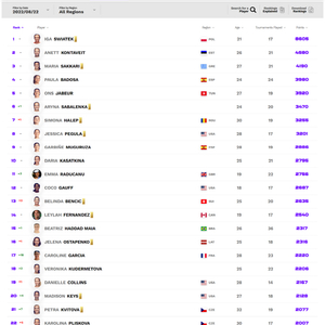 北京时间8月22日,WTA官网更新最新一期的世界排名。辛辛那提站新科冠军加西亚排名提升18个位次,最新排名重返Top20,列第17位;加西亚的冠军排名也冲到了第9名的位置,斯瓦泰克依然稳坐世界第一宝座;在辛辛那提闯进四强阶段的萨巴伦卡超越哈勒普升至第六。张帅凭借在辛辛那提跻身八强的优异表现,世界排名提升9位,最新排名列第35名;此外,郑钦文排名上升一位,刷新个人新高排名第40。