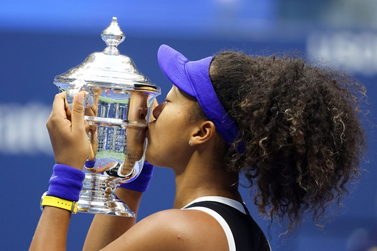 图说:大坂直美亲吻美网冠军奖杯 网络图
