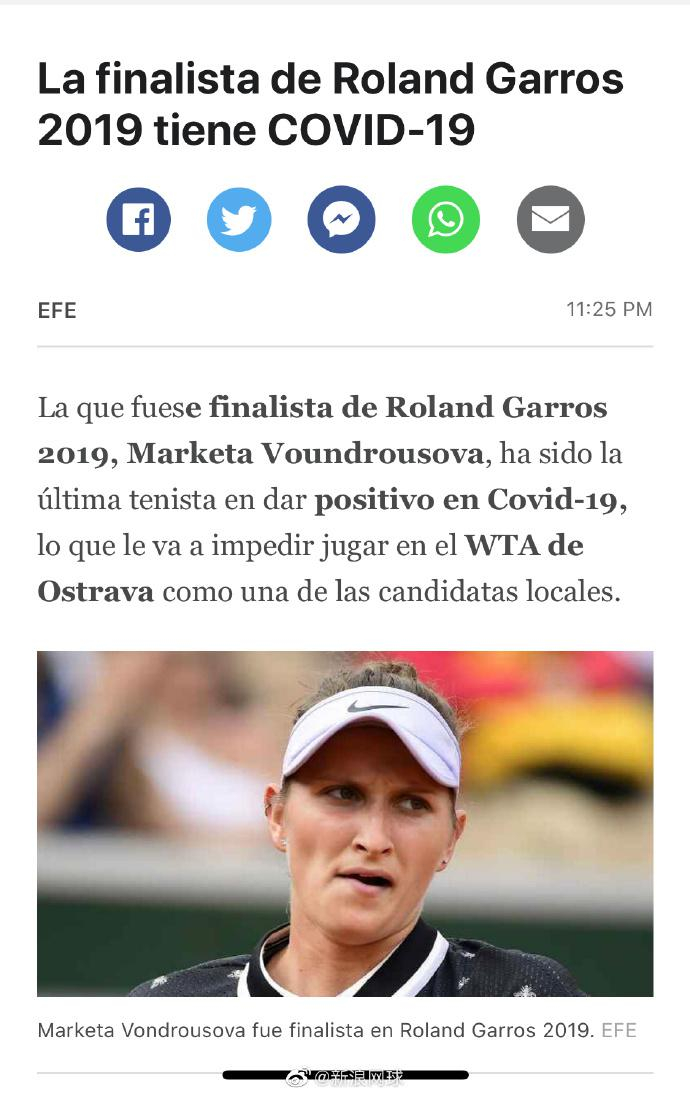 北京时间10月17日 根据外媒报道,去年法网女单亚军万卓索娃的新冠检测是阳性。她原本将参加下周开始的俄斯特拉发顶级赛。