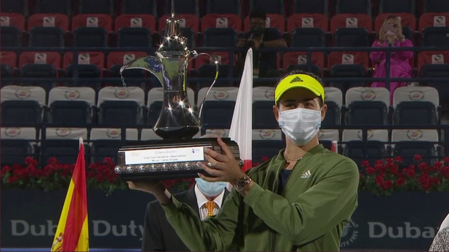 北京时间3月13日,2021年WTA1000级别赛事迪拜站落下帷幕。前世界第一、西班牙名将穆古鲁扎,直落两盘以7–6(6)/6–3击败来自捷克的克雷吉茨科娃,时隔706天后再次夺得巡回赛单打冠军。中国组合徐一璠/杨钊煊在女双决赛中吞蛋完败获得赛事亚军。