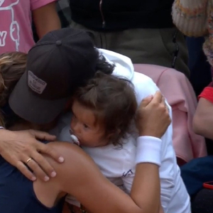 夺得生涯第二冠的玛利亚与家人孩子拥抱庆祝