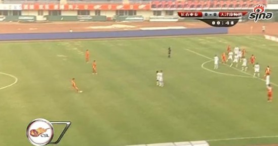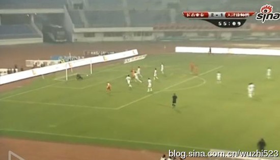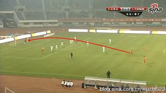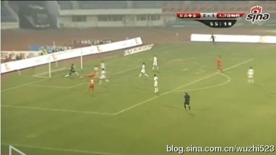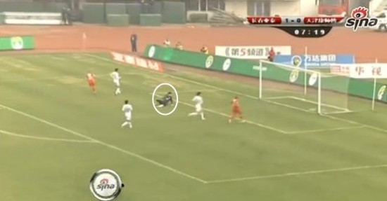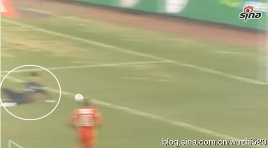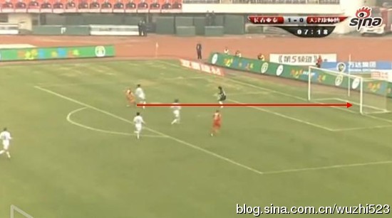 2、皮球运行到罚球区内时经过一次弹地并且被长春亚泰队员晃过,这增加了守门员的难度,但杨启鹏的扑救动作也实在是慢的惊人。