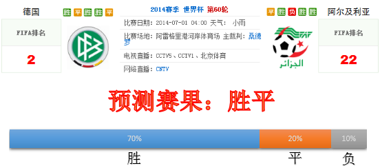 ·从小组赛中可以看到,阿尔及利亚不到万不得已,还是喜欢在攻防转换中寻找破门机会,而且喜欢从边路发起一波流的进攻。德国的中场足够强大,预计会在比赛中压着阿尔及利亚踢,所以也应当注意对手的边路反击。小组赛中德国踢得最顺的一场是对阵葡萄牙,阿尔及利亚则是对阵韩国,因为两个对手的中路防守都太差劲了。