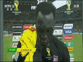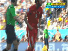 一个FIFA官员冲过来,把一件黄色球衣搭到小魔兽肩上,刚好挡住logo。