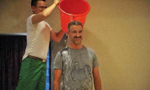 而在中国体育界,不少人也像“江南STYLE”“巴赫自拍”一样,自觉不自觉地参与其中:在《乒乓世界》编辑部办公室里,执行总编夏娃吃力地将冰桶举过头顶,很快她的连衣裙和眼镜镜片变得一片湿冷。在完成这一自称为“刘胡兰”式的壮举后,夏娃向热衷公益事业的国乒总教头刘国梁,红双喜老总,以及跳水名将李娜发起挑战;在李宁工业园区,李小鹏完成了这里的第一桶,同期接受这项挑战的,还有昔日的体操王子李宁和跳台王子田亮;此前,小巨人姚明也收到美国NBA从彼岸发出的邀约,他承诺在姚明学校期间完成挑战行动。真有点为执行这一任务的工作人员担心,2米26的个头,是要升到多高的梯子上去倒这桶冰啊?在南京青奥会赛场,吉祥物“拓拓”和国外游泳爱好者交流着冰桶的经验,而不少跑步、自行车赛事,也正酝酿通过“冰桶行动”来推广赛事……