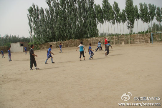 这一去吾斯曼就被震撼了,以前听说过下面学校的情况很苦,但他没想到会这么苦。和田距离乌鲁木齐1500公里,吾斯曼坐了快30个小时的火车。但到了和田之后还要再坐几个小时的车才能到喀瓦克乡。学校里根本没有像样的操场,孩子们踢球就是在土地上。让吾斯曼心疼的是,因为没有球鞋,孩子们都是光着脚在土地上踢球。夏天的新疆温度很高,地上晒的很热,为了不让脚上烫起泡,孩子们的脚都不敢在地上踩实了。就是这样,这些孩子踢起球来也非常认真。