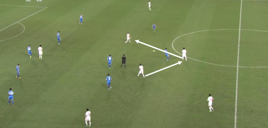 二、处理球方式存在不合理的地方。出任单箭头,肯定背身拿球次数增多,但武磊回传、回做偏少、出球偏慢,容易受到对方围抢。且个人单兵作战方式偏多、身体力量较差,对抗中处理球的能力不强。