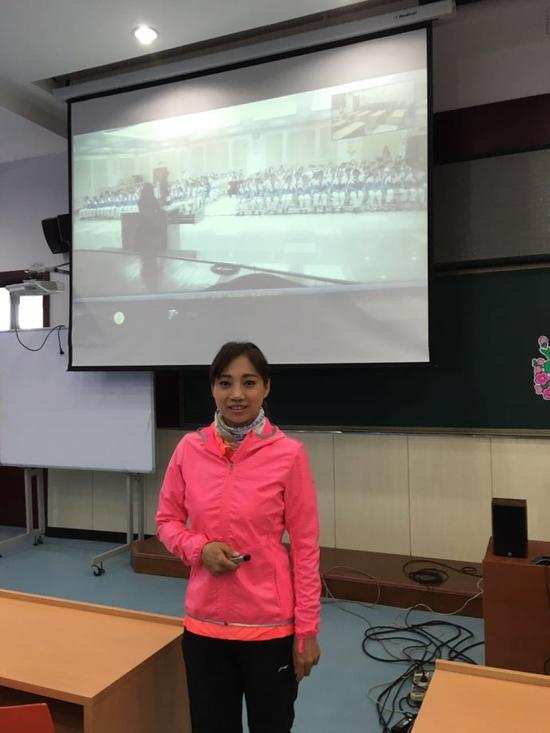 “我像你们这么大的时候,天蒙蒙亮,就要穿着又肥又厚的羽绒服大衣,等待着教练吹响跑步的哨声。四百米的环形跑道,我们至少要跑10圈,大多时候是哭着跑完的。”