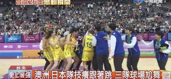 在台北世大运女篮颁奖礼现场,获得铜牌的台北女篮姑娘们玩儿疯了。她们临时起意跳舞,向小巨蛋体育馆里12000名观众答谢,结果,获得金牌的澳洲队也冲上来加入舞团,找台北女孩儿们battle。最后,银牌日本队也被拉进舞团。青春飘扬的女孩儿们,闹腾地倒在地上,把女篮颁奖礼化作了一片舞池。
