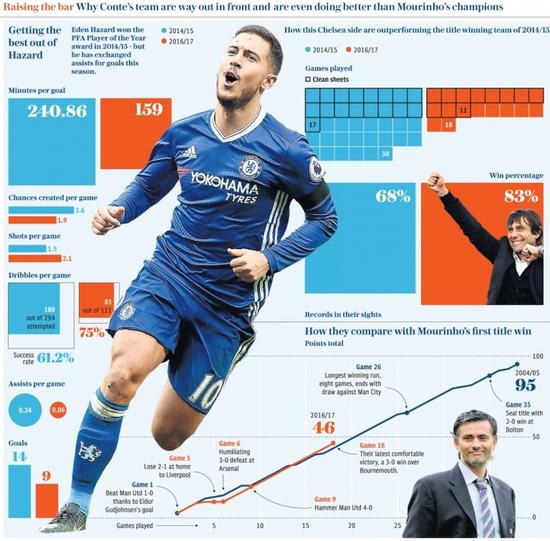 佩德罗和威廉本就不满活在阿扎尔的阴影里,后者因此和曼联传出绯闻,挤掉阿扎尔打上主力,求之不得,双杀在射手榜留名。