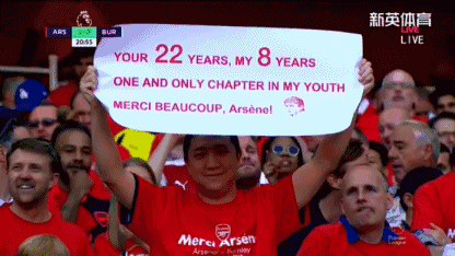 还有一位同样身穿阿森纳T恤的中年大哥,用时间做了注脚:你的22年,我的8年,我青春中唯一的一章,感谢你,温格。