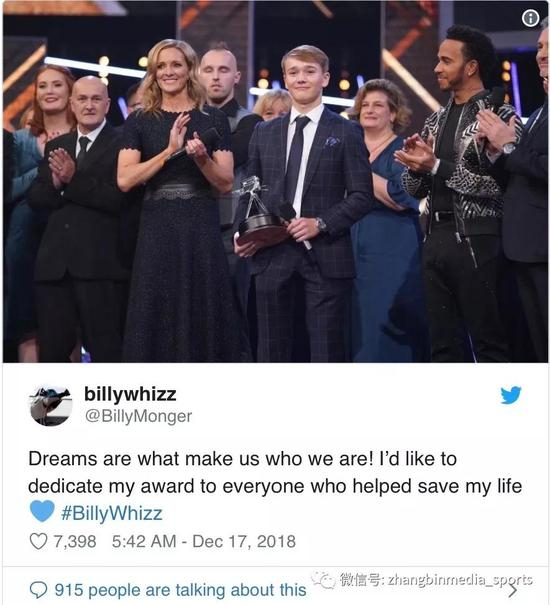 凡此类大奖大多都是在比拼成绩的含金量,但总要有特别的奖项设计来褒奖勇气,BBC设立的海伦﹒罗拉森奖便是勇气的赞歌,今年获奖者是19岁的赛车手比利﹒蒙格,他开启了2018年的盛典。17岁那年,蒙格在一场F4比赛中遭遇严重车祸,被困在车内90分钟,才被运至医院急救,但任何医疗手段都无法让他可以保全双腿,成为F1车手的梦想更是遭受重创。经过一年的康复,今年蒙格神奇地回到英国F3赛场上,拿下赛季首站的第三名,成就勇气的传奇。治疗团队与车队成员一起受邀登台,目睹蒙格从名宿汉密尔顿手中接过奖杯,“活着真好!无论别人告诉我怎样的结果,我都要重新开启赛车。”这发自内心的感慨让现场起立的众人泪眼模糊。不知为何蒙格的获奖感言被主持人打断,遭到观众愤怒谴责,不得已在颁奖典礼结束前,再度请出蒙格登台将感念的话语说给了每一个人。