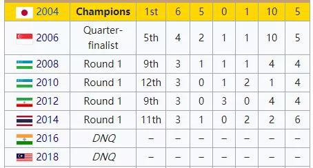 U23亚锦赛,中国队在2013年、2016年、2018年的三届都小组出局,总战绩1胜8负。