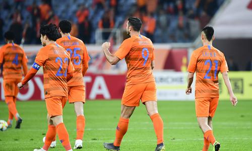 山东鲁能出场阵容:14-王大雷,13-张弛(87分钟,7-崔鹏),35-戴琳,4-吉尔,5-郑铮,25-费莱尼,22-蒿俊闵,33-金敬道,21-刘彬彬(56分钟,18-周海滨),17-吴兴涵(78分钟,6-王彤),9-佩莱
