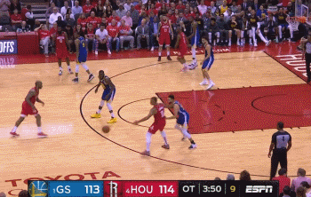 勇士基本找到了对付卡佩拉的办法,现在哈登都不太愿意跟他打挡拆,因此下半场大部分进攻都是和伊戈达拉一对一,两节和加时共得28分。