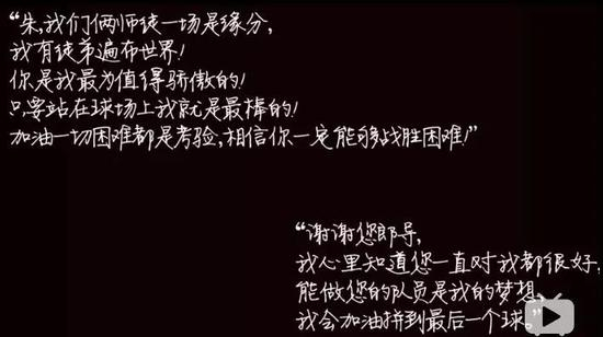 晚上,郎平给朱婷发了一条微信。“朱,我们俩师徒一场是缘分,我有徒弟遍布世界!你是我最为值得骄傲的!只要站在球场上我就是最棒的!加油。一切困难都是考验,相信你一定能够战胜困难!”朱婷收到微信之后在屋里哭了,回复说,“谢谢您郎导,我心里知道您一直对我都很好,能做您的队员是我的梦想,我会加油拼到最后一个球。”