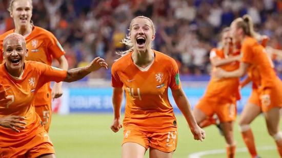 2015年,也是荷兰女足第一次参加世界杯。两年后,他们赢得了欧洲杯冠军,4年后的今天,她们站上了世界杯决赛的舞台。