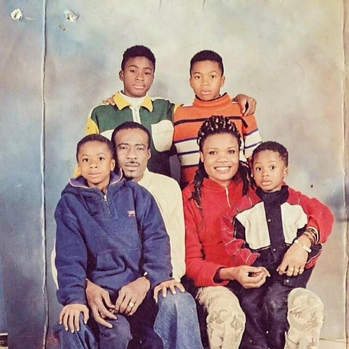 照片上面,父亲在两年前去世了,四个孩子都在打篮球。