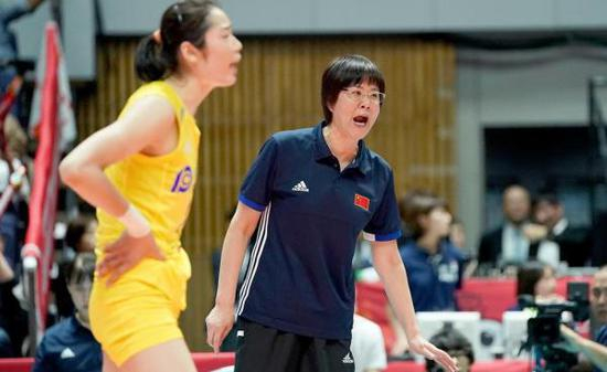 郎平在场边指导。