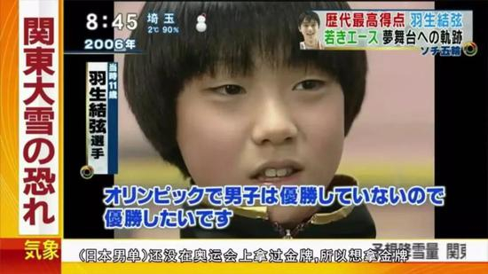 网上有一个广为流传的视频,拍摄于2006年,当时羽生结弦11岁,留着和偶像普鲁申科一样的蘑菇头。他在镜头前毫不胆怯地说出自己的目标,拿奥运金牌,还想试试五周跳。在后来的采访中,羽生结弦更明确地宣告了他的职业规划,“19岁和23岁时参加奥运会,两届奥运会都拿到冠军后退役,我真的从幼儿园就这么打算了。”