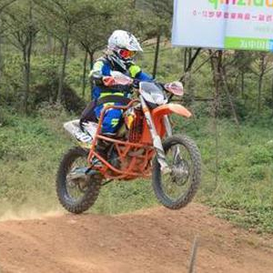 这台KTM经改装,有保护架。尽管如此,也须人车绑在一起。