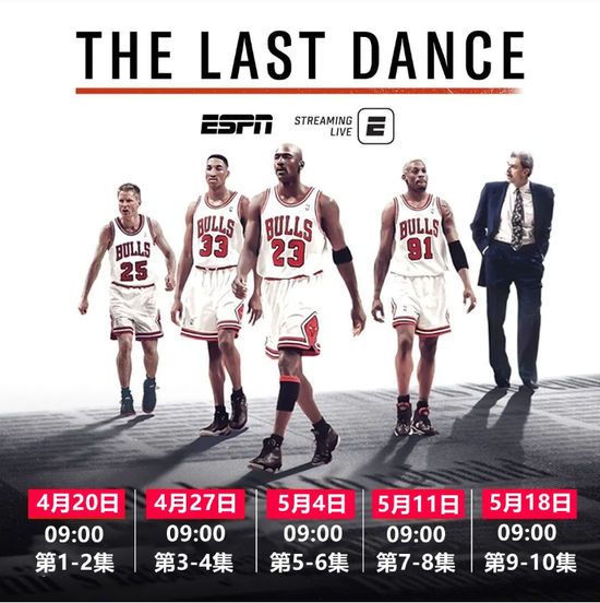 《最后的舞蹈》原定今年6月总决赛期间推出,因疫情爆发,提前将近两个月,此前詹姆斯也曾提议,不如现在推出,一定大火。