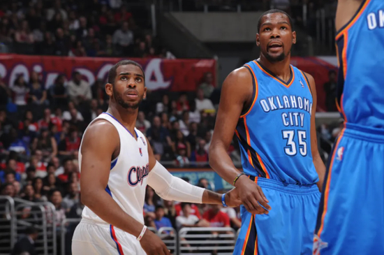 艰难击败灰熊的系列赛,杜兰特场均30分命中率44%。之后过快船时,快船一度试了个诡异的招式:保罗去对位杜兰特。