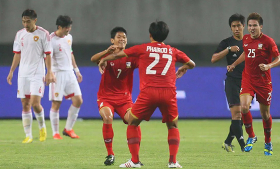 轻敌的中国队,碰上越踢越兴奋的泰国队,最后输了1比5。