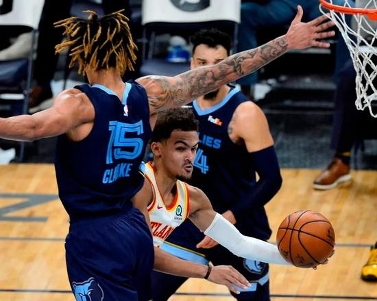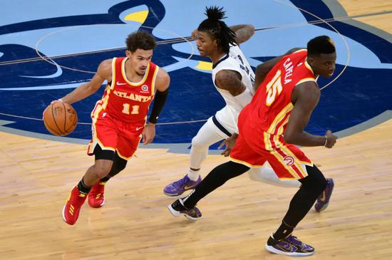 哈登得44分的这天晚上,特雷·扬对灰熊拿下36分,而上一战对公牛是37分,老鹰开季两连胜。终场前还剩1分多钟,老鹰只领先3分,特雷·扬面对格雷森·阿伦的防守用了一个杂耍般的假动作,犹如跳跃的灵魂,突入禁区上篮得手。