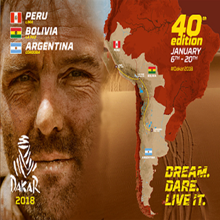 2018年达喀尔拉力赛迎来第40届比赛,比赛于1月6日从秘鲁首都利马发车,1月20日在阿根廷科尔多巴收车,涵盖3个南美国家14个赛段,共有513名车手参赛,全程超过9000公里。